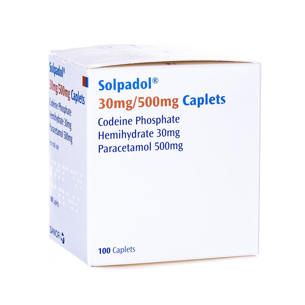Solpadol is available in one strength. Each Solpadol capsule, caplet or effervescent tablet contains 500mg of paracetamol and 30mg of codeine.
